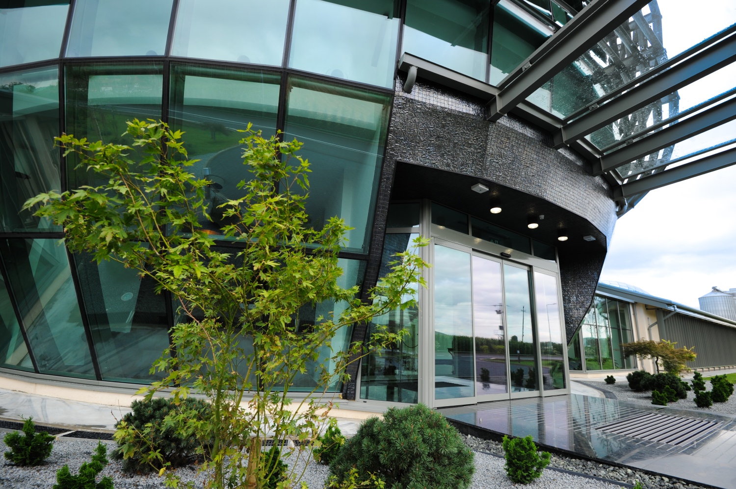 Repurposing of an ensemble of buildings originally with agricultural and zootechnical function into modern office spaces with administrative purposes, including the centerpiece building in the shape of a glass egg representative for the company activity – the largest producer of chicken meat in Romania.