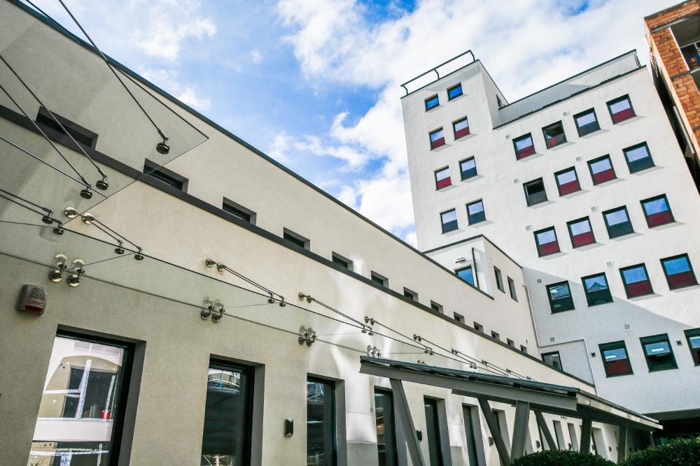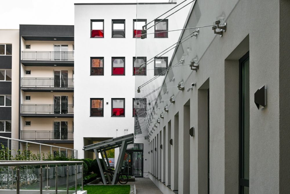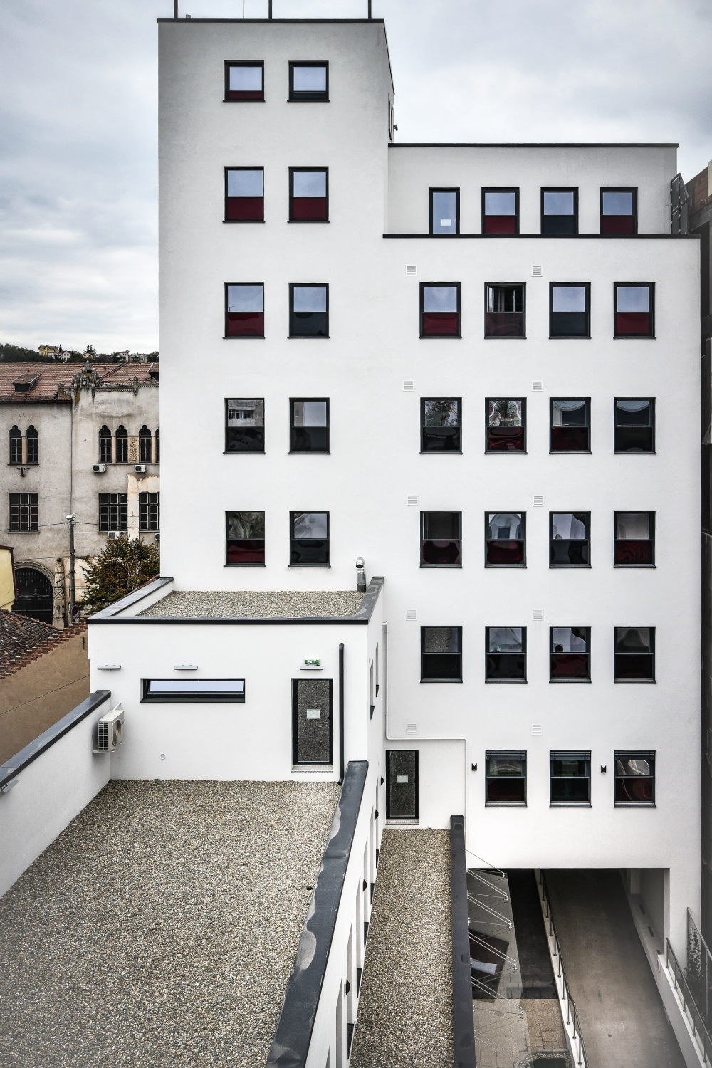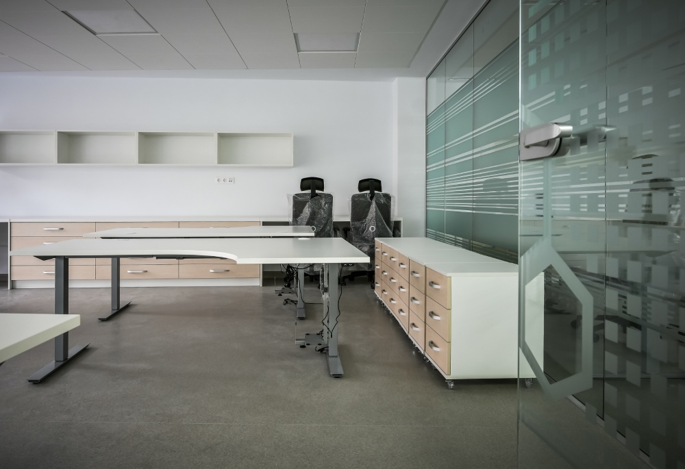 Execution of an office building with underground level, ground floor, 5 levels and a 6th partial level. The building has a reinforced concrete structure, BCA Ytong façade thermally insulated with expanded polystyrene and finished with decorative plaster except for the main façade which is shaped like a honey comb and has a curtain wall with undulated metal sheet and LED lighting.